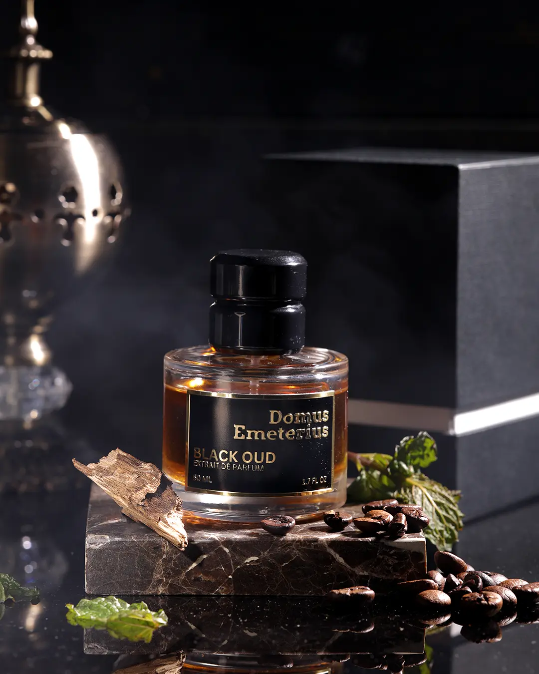 Named after his late father, Domus Emeterius (House of Emeterio) showcases Prestado’s personal journey through scent. “I told my story and experience in the Middle East through two of my perfumes: White Oud and Black Oud,” he explains.