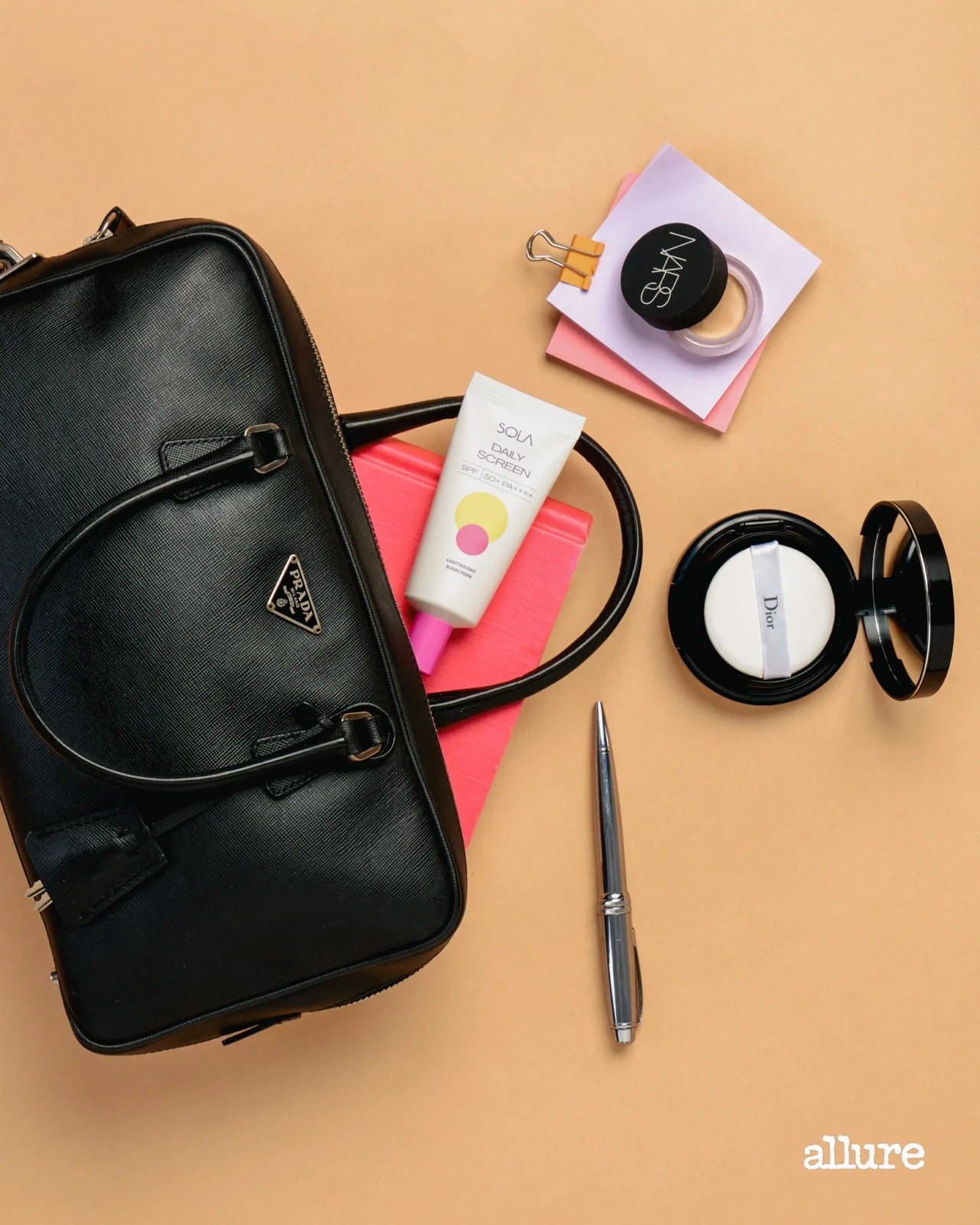 Everything begins with sun protection. Even short bursts of outdoor exposure add up over a full day of errands, walking, and commuting. A lightweight formula like the Lightweight Daily ScreenSPF 50+ PA++++ from Sola is particularly useful because it layers smoothly over makeup without shifting the base underneath. Reapplication becomes realistic instead of something you promise yourself you’ll do later.
