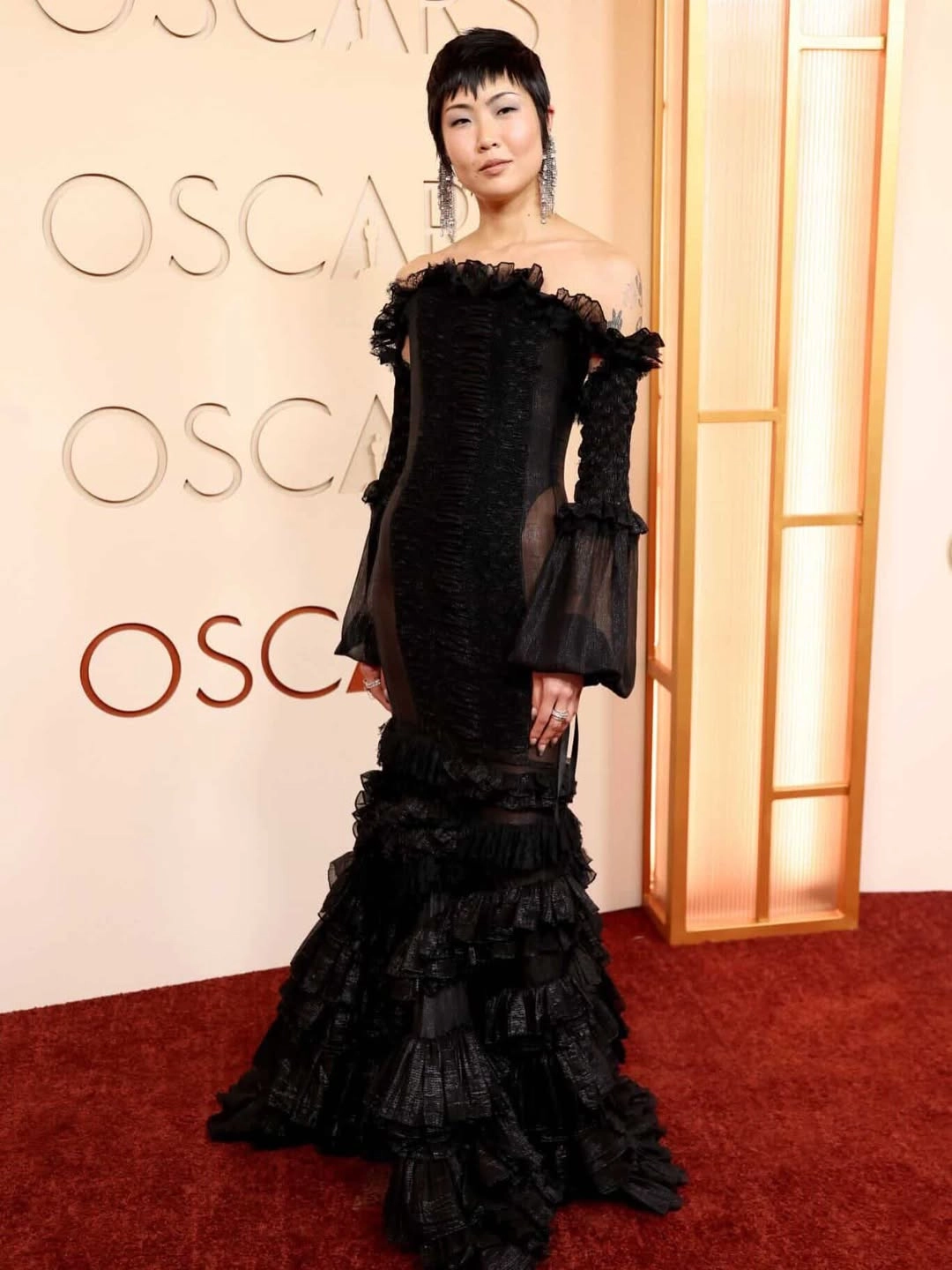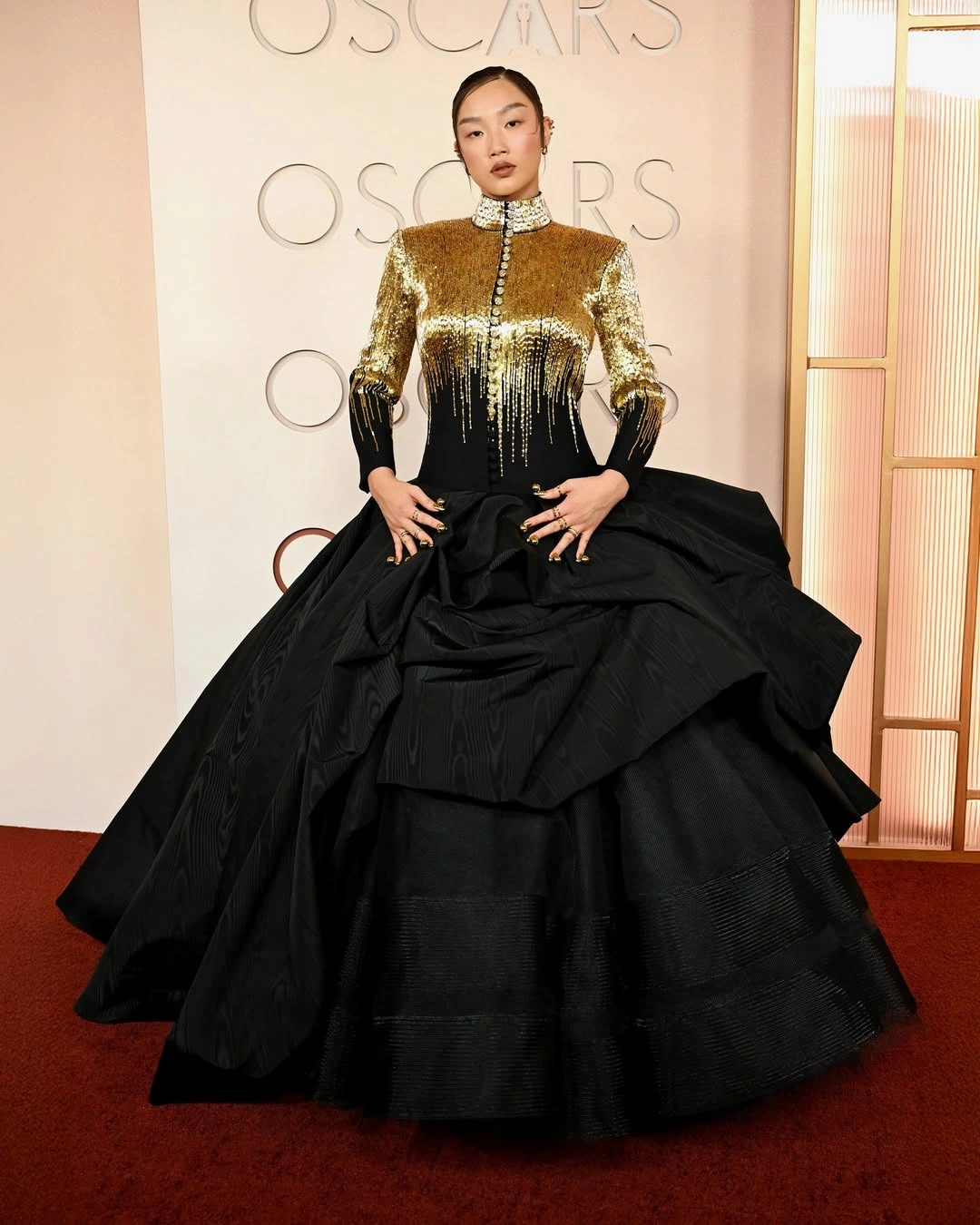 K-Pop Demon Hunters’ Audrey Nuna struck gold at the Oscars—literally. Her chrome nails were an extension of her showstopping Thom Browne fit. Created by nail artist Marielle Co, each fingertip was adorned with 3D auric orb hardware. Nuna gave a shoutout to Co and her genius at the red carpet, saying “she ate it!”