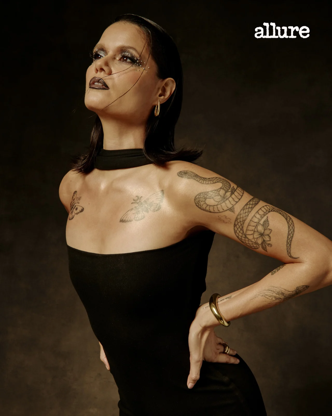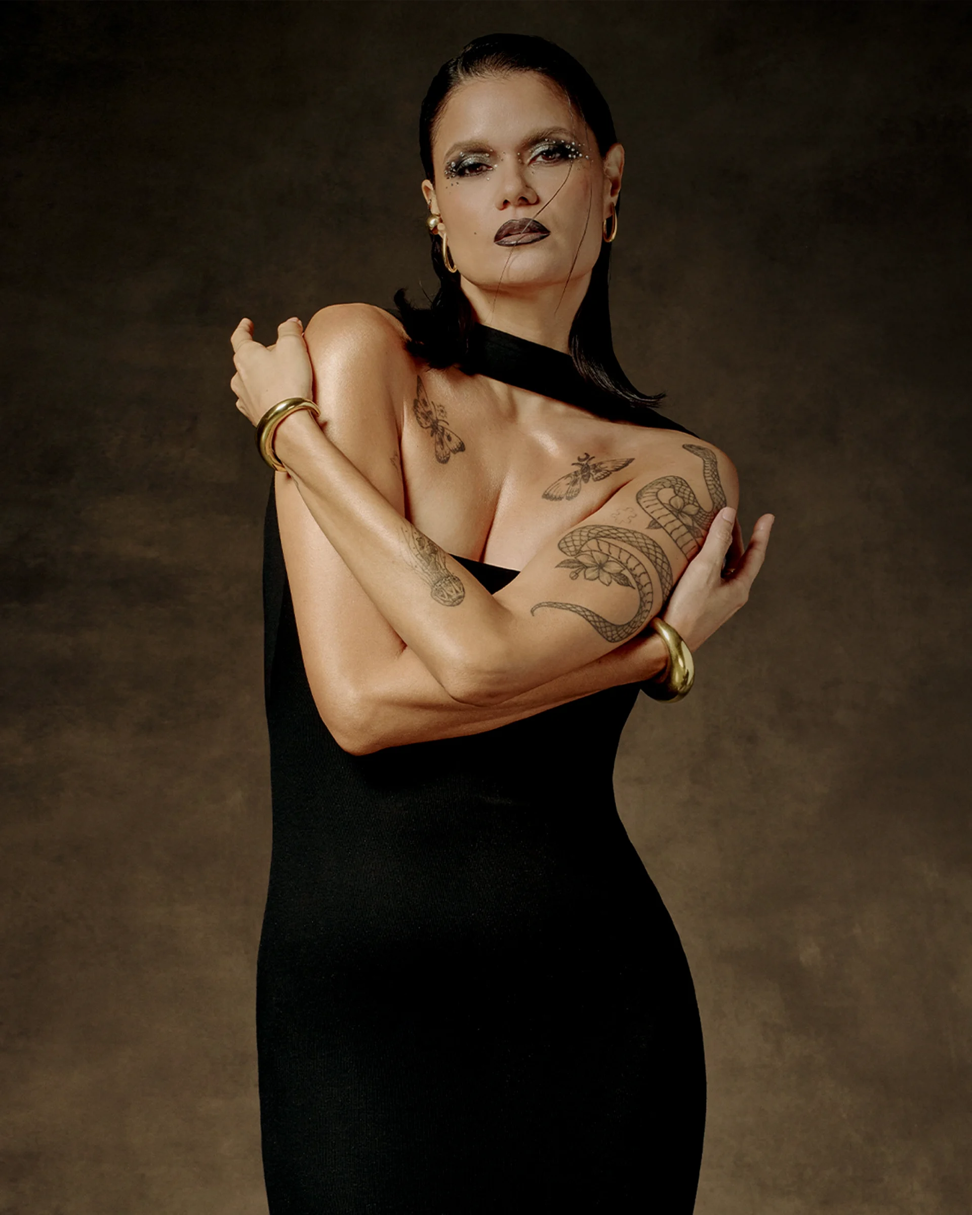 Perhaps the most striking tattoo on 41-year-old model, DJ, and host Sanya Smith is the snake that winds across her left upper arm. “Snakes in media and religion are often seen [in a] negative way [like] temptations and evil,” she says. “But in spirituality, it means rebirth, growth, transformation–-shedding of the skin.”