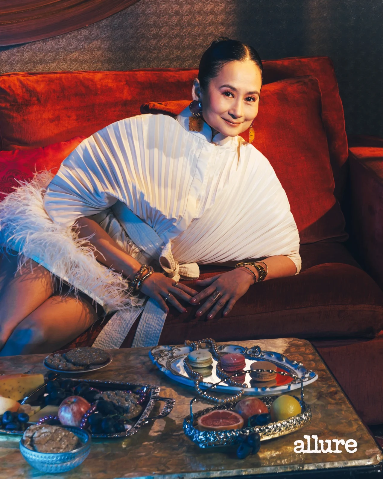Art direction: Nicole Almero. Beauty direction: Bianca Gozon and Yeyen Espineda. Makeup: Gery Penaso. Hair: Lourd Ramos. Wardrobe styling: Niña Cuyana and Jermainne Lagura of Qurator. Product styling: Chila Zialcita. Nails: New Lounge. Shot on location at Salon De Ning in The Peninsula Manila.