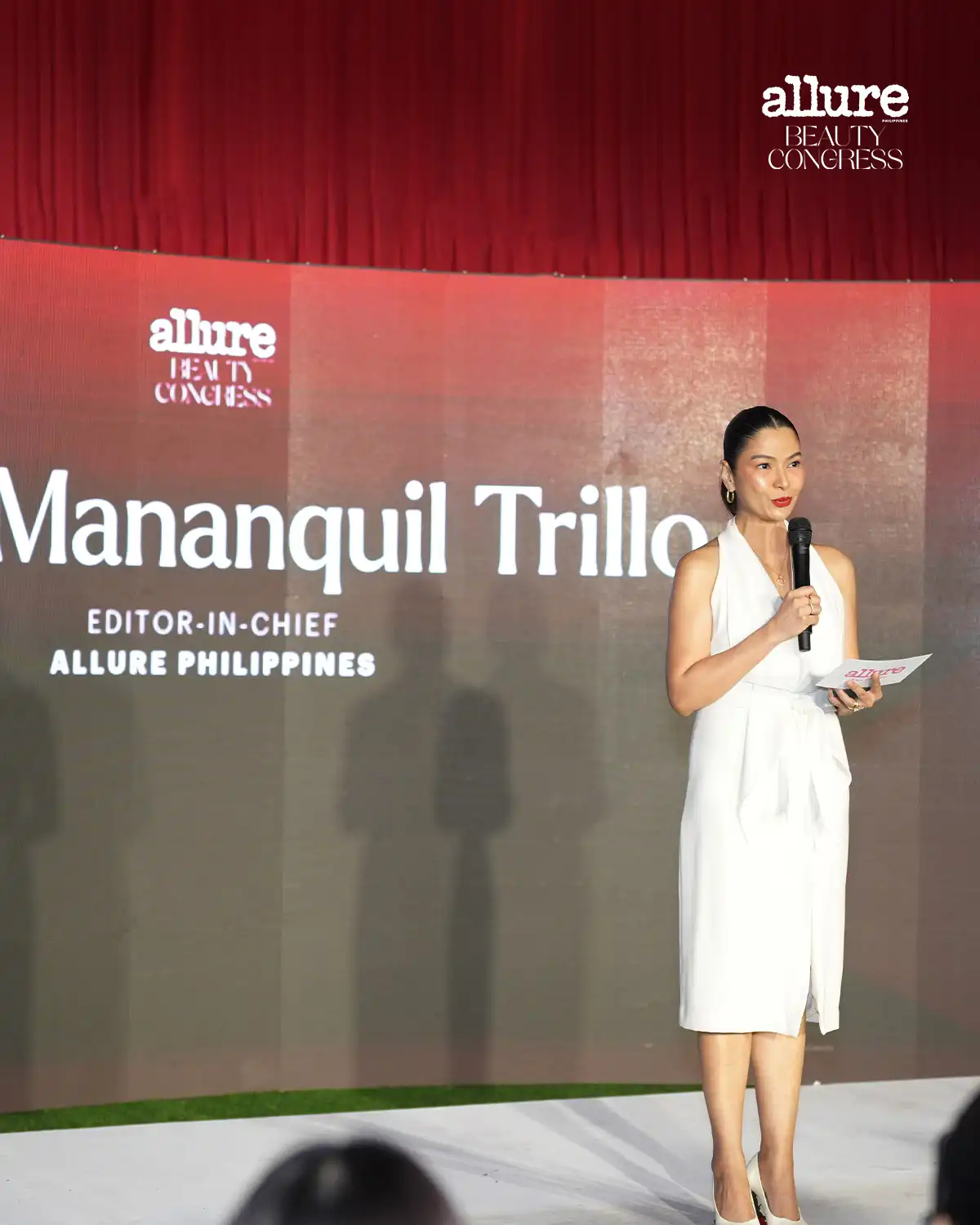 Kicking off the evening are remarks from Archie Carrasco, CEO of AGC Power Holdings Corp. and Mega Global Licensing Inc., and publisher of Allure Philippines. “Allure has embraced its role as the country’s beauty expert, guiding our readers with authority, sensitivity, and purpose,” he says. “We have celebrated the power of morena beauty, emphasized the importance of wellness for the young generation, and now we are closing this remarkable three-day Congress that brought our community together.”