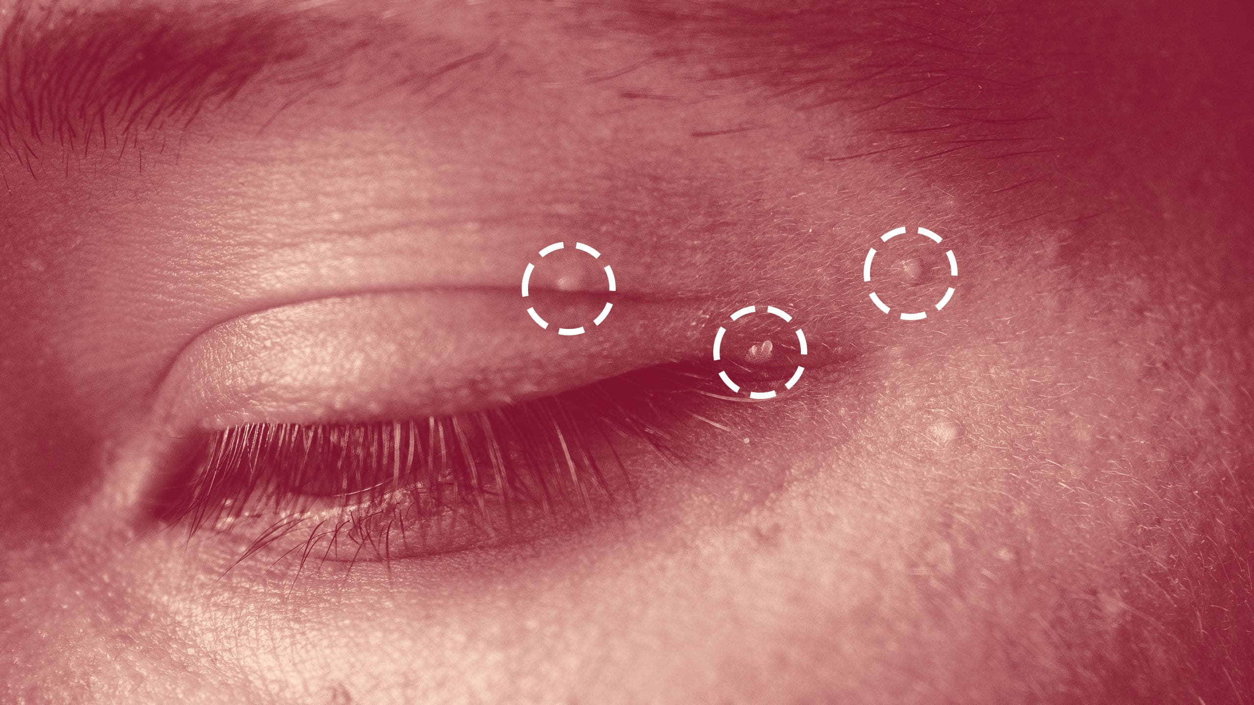 “Milia is where the skin grows completely over a pore and the skin debris is trapped beneath the surface,” he says. “So while it looks like a whitehead, it is difficult to remove and often requires a tool to open the skin’s surface and pop out the hard white core.”