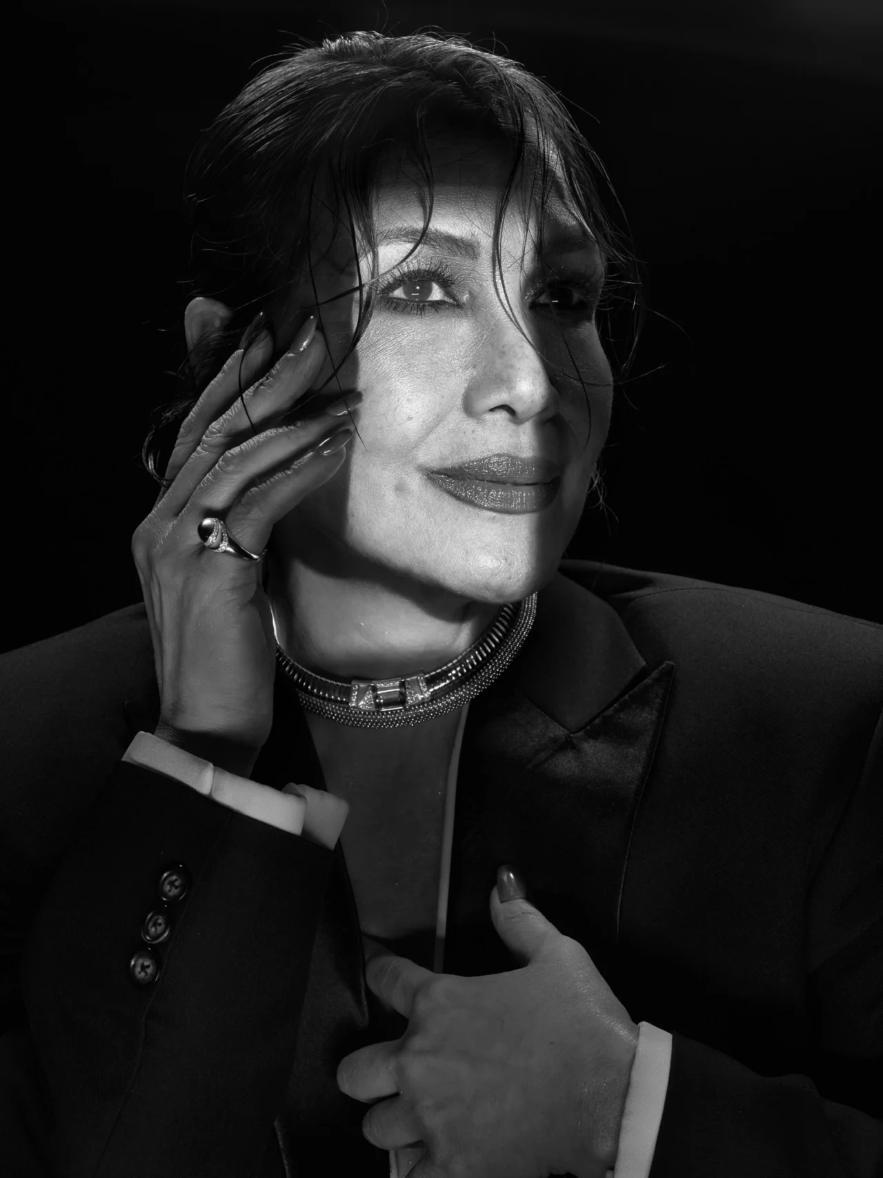 On set, her presence is immediate, yet unforced. With each pose, you would never think she’d been away for nearly 40 years. Her actions are deliberate, her expressions poised, her grace intact. Watching her work feels like witnessing a butterfly flutter back to its garden: She belongs there.